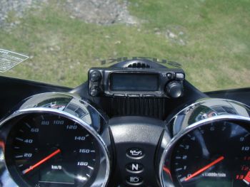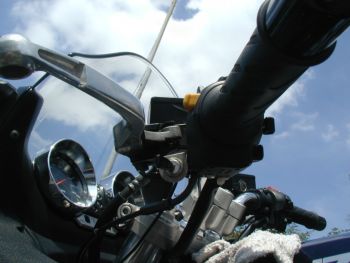 バンディット1200Sにはハーフカウルがついてるので、雨が降っても操作パネルはほとんど濡れません。この設置位置で数年程度使えました |