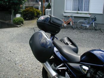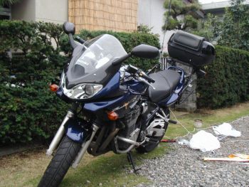 私が乗っているバイク(バンディット1200S)の全景です。このときはパニアケースがついてるので結構大きく見えます。